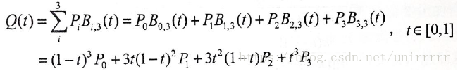 //参考公式 Q(t)=(1-t)^3*P0 + 3t(1-t)^2*P1 + 3t^2(1-t)*P2 + t^3*P3