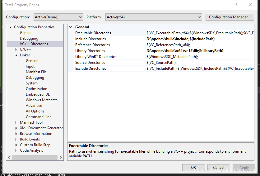1.在把opencv的include添加到Include Directories和vc15\lib添加到Library Directories