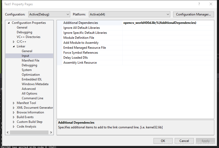 2.在把opencv_world400d.lib添加到Additional Dependencies