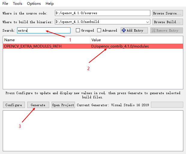 进入cmake,配置OpenCV_4.1.0