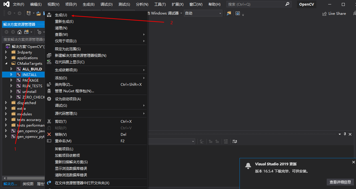 进入 D:\opencv_4.1.0\newbuild 目录 找到 OpenCV.sln 双击