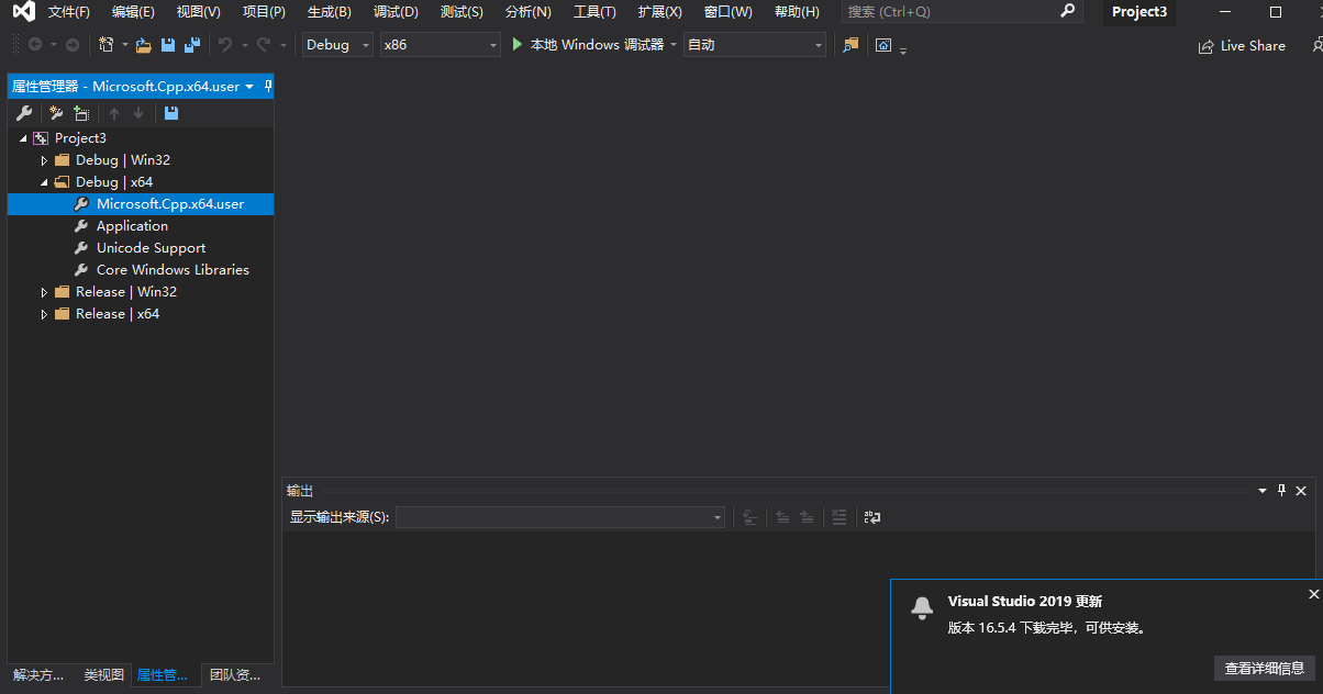 七、VS2019属性页没有Microsoft.Cpp.x64.user解决办法
