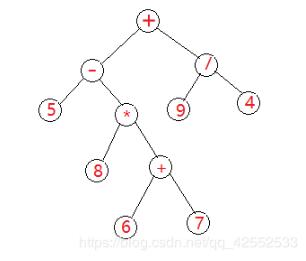 其中缀表达式为:5 - 8 * 6 + 7 + 9 / 4