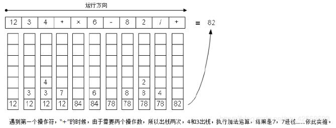 /*如果遇到操作运算符则,弹出两个数据进行运算,然后将得出的结果重新入栈*/