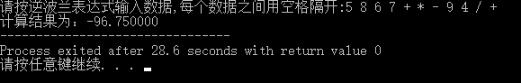printf("请按逆波兰表达式输入数据,每个数据之间用空格隔开:");