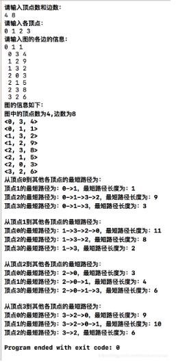 // 求所有顶点之间的最短路径