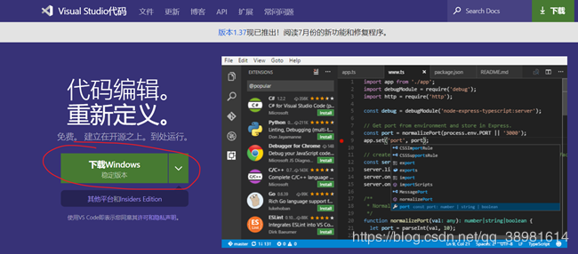 网址:https://code.visualstudio.com/ 选择适合自己的版本,自行安装,要记得安装路径(为以后的卸载什么的留好后门)默认选项即可,也可自己瞎选,如果有问题可自行搜索解决。