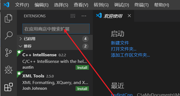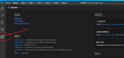 注:楼主已经安装了中文插件,因而刚开始界面就是中文,前面不完全一样截图就看看参考下就好啦,扩展商店的位置在左侧最下面那个图标点进去,选择推荐的那一栏然后再搜索你需要的插件,里面应有尽有。