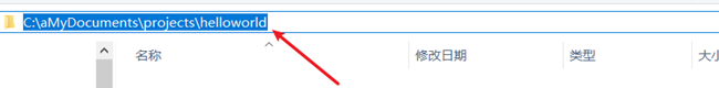 现在我们需要复制下这个文件的路径(打开helloworld文件夹后,在地址栏复制,个人的示例如图:)(这样我复制的地址就是:C:\aMyDocuments\projects\helloworld )