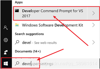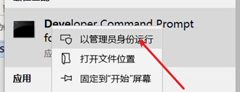 2、要打开VS的开发人员命令提示符,请在Windows的“开始”菜单中输入“Developer”,你应会看到它出现在建议列表中。(名称取决于你安装的Visual Studio版本)