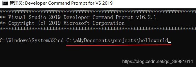 打开Visual Studio的开发人员命令提示符后,键盘输入