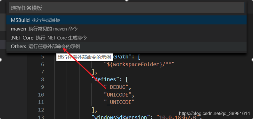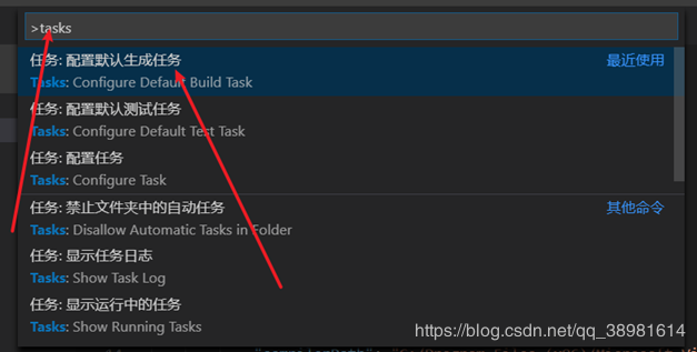 同样按Ctrl + Shift + P打开命令调面板---->>输入 tasks---->>选择 Add a default build task---->>再选择 Others 这样就创建了一个tasks.json的文件