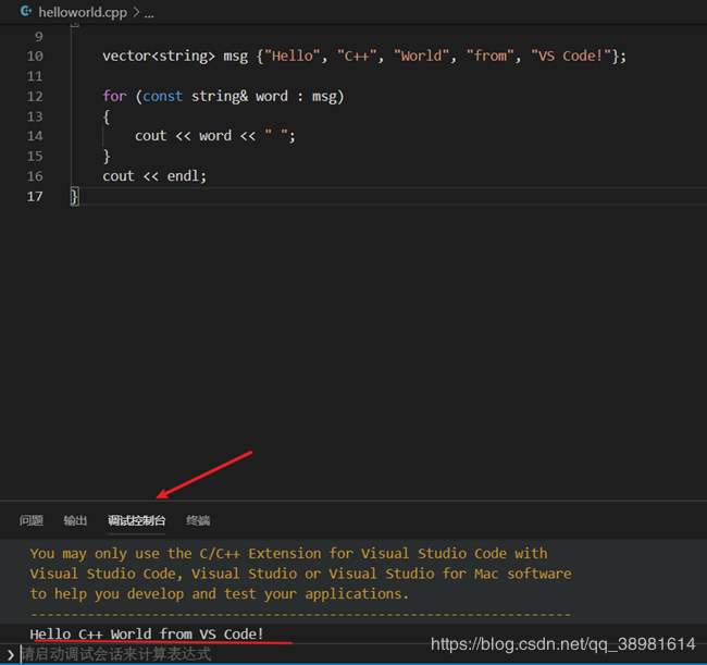 vector<string> msg {"Hello", "C++", "World", "from", "VS Code!"};