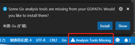 11、如果在打开VSCODE时(默认GO项目工程),提示