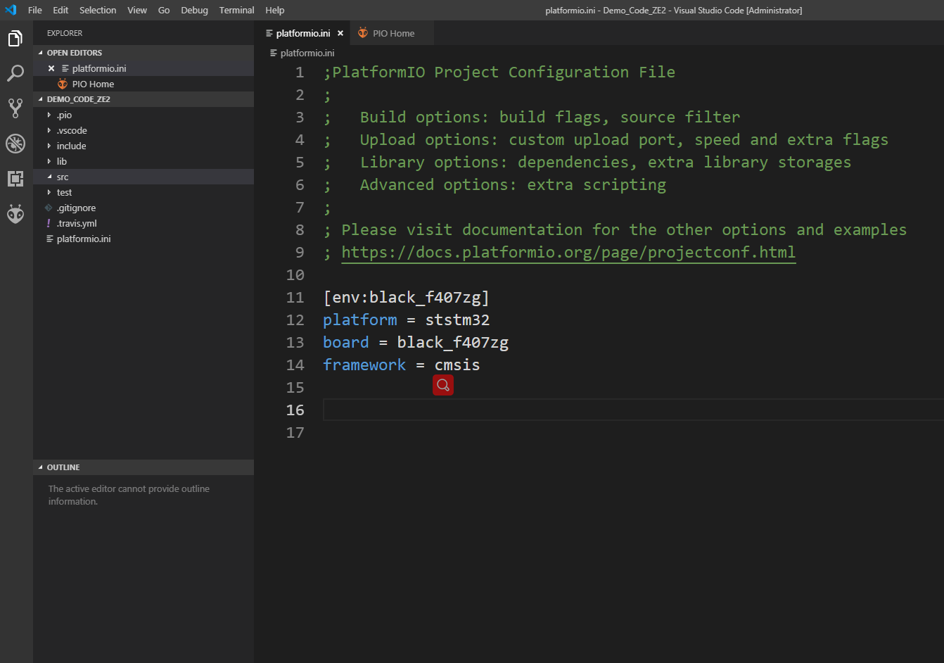 项目创建完成后,打开查看platformio.ini