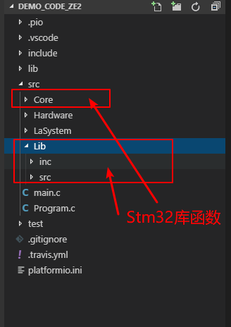 注意这里面的目录和刚才 platformio.ini文件中配置的头文件搜索目录是对应的.