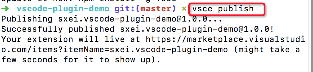 创建成功后会默认登录这个账号,接下来你可以直接发布了,当然,如果你是在其它地方创建的,可以试用vsce login your-publisher-name来登录。