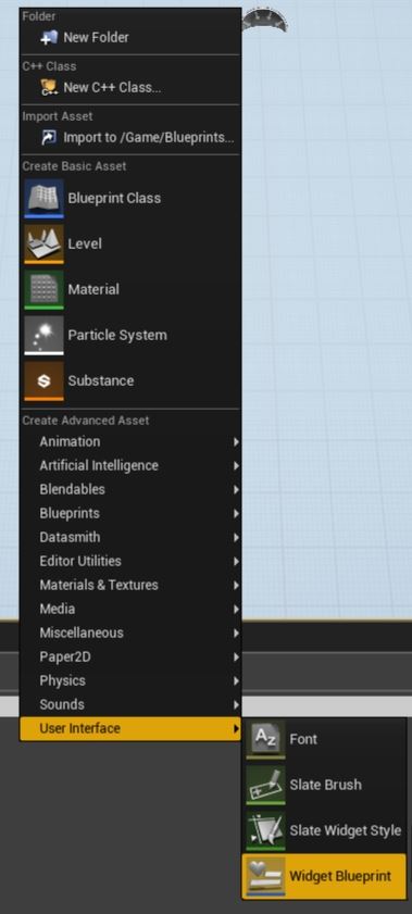 创建一个 UEnterChannelWidget 的 Blueprint,右键点击内容,选择用户界面菜单并选择 Widget Blueprint。