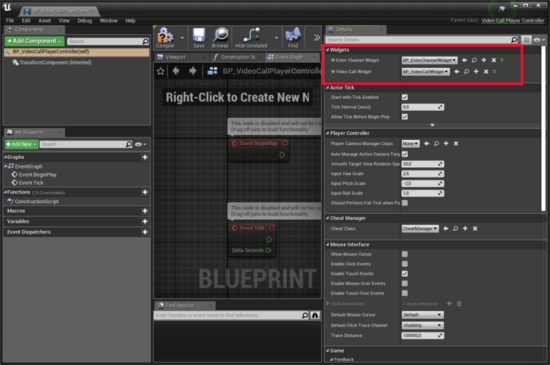 将其保存到文件夹,例如 /Content/Widgets/BP_VideoCallPlayerController.uasset。