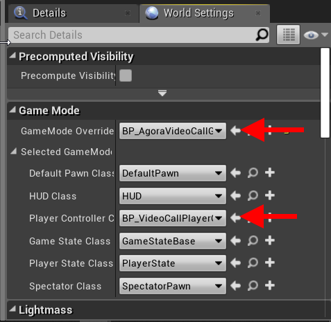 现在你需要设置你的自定义 GameMode 类和玩家控制器。到世界设置中,设置指定的变量: