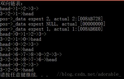 cout << "双向链表:" << endl;