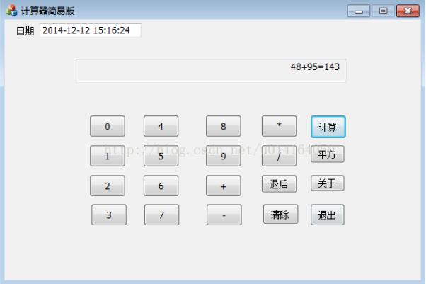 其它按钮类似,再添加“+”、“-”、“*”、“/”按钮和对应的响应处理函数