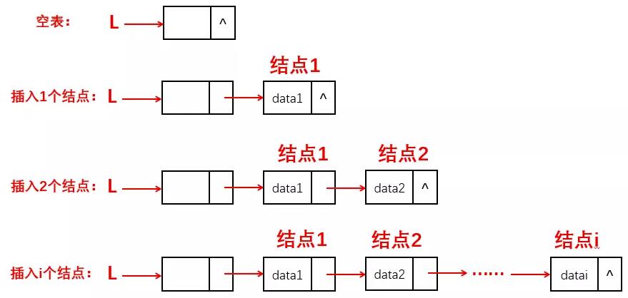 q->next=NULL; //尾结点地址赋空值 ,尾插法