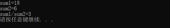 std::cout << "sum1/sum2=" << sum1 / sum2 << std::endl;