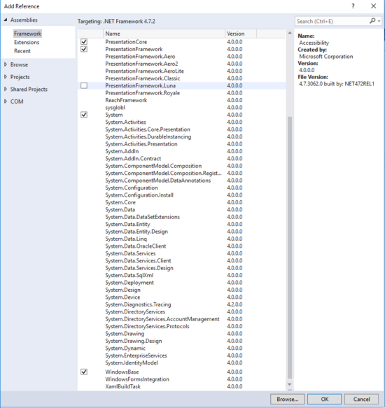 为了正确引用到 WPF 中的各种库,我们还需要加入 WPF中 3 个核心的 dll,操作方法是: