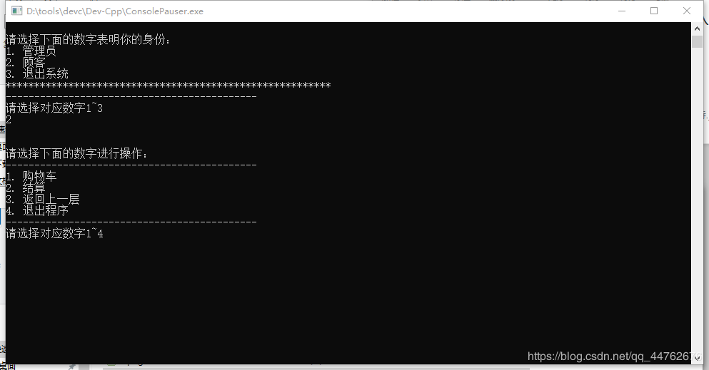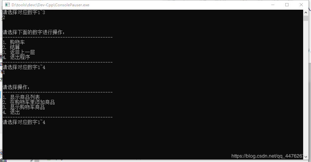 void UpdateKu();//更新购物车信息函数 void calculate();//计算所购商品价格并修改保存int menu1();//打印主菜单函数 int menu2();//打印管理员菜单函数 int menu3();//打印顾客函数 void CreateGoods();//录入商品信息函数 void ShowGoods();//显示库存信息函数 void ShopCart();//对购物车进行操作 int ShopCartMenu();//打印购物车菜单 void ShowCart();//显示购物列表 void add();//在购物车里添加商品
