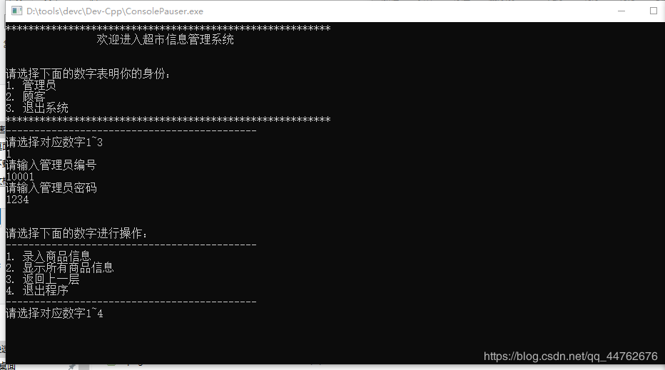 2.管理员有登入,录入商品信息,显示所有商品信息功能