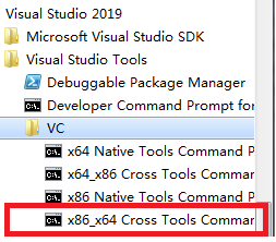 双击运行可能出现闪退,最好的办法(亲测有效): 选择vs2019 —> visual studio tools —> vc —> x86_x64 Cross Tools Command Prompt for VS 2,打开命令行: