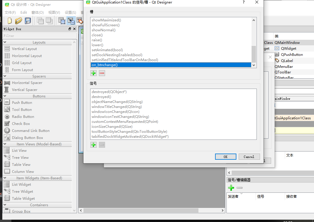在qt中可以直接添加信号与槽 在vs中使用是不一样的