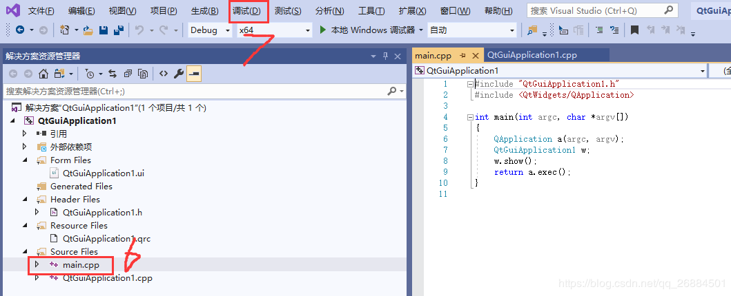 配置完成后,点击mian函数,进行调试即可测试,另外可在此qt项目基础上配置opencv,方法的话上一篇文章有讲到(传送门)至此vs2019+qt+opencv的配置到此结束,这个也是我自己在配置过程中自己摸索,终于将环境配置好并且跑通了代码。
