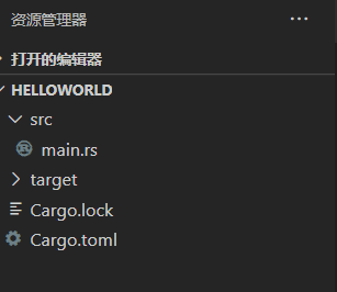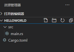 在资源管理器那一栏,右键创建文件Cargo.toml。我们简单配置一下这个文件即可
