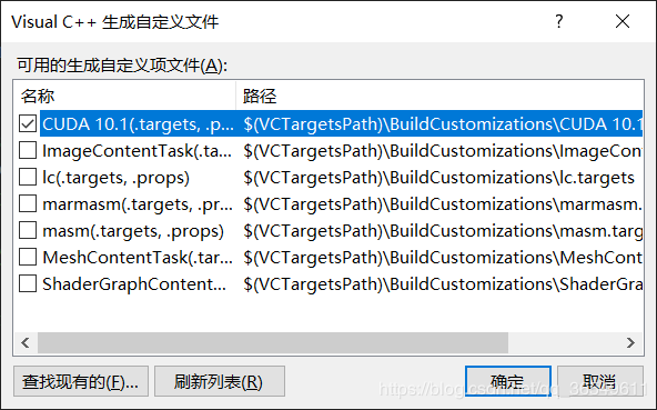 5,可以看到文件中有关于CUDA的文件,选中“CUDA 10.1”(你所对应的CUDA版本),点击“确定”。