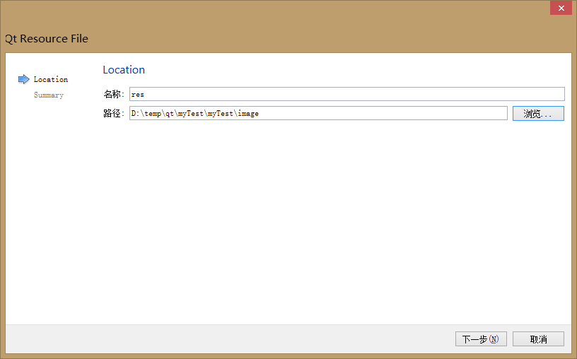 选择资源文件的路径,并为它命名