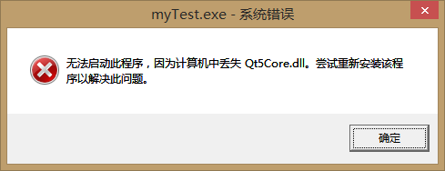 这时如果运行.exe文件会发生错误,提示找不到一些.dll文件:
