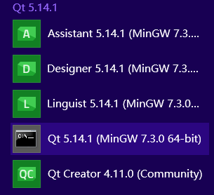 在开始菜单中找到Qt cmd 工具,打开