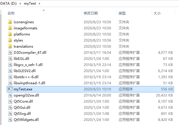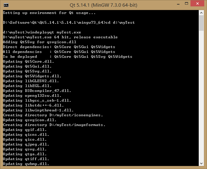 windeployqt myTest.exe