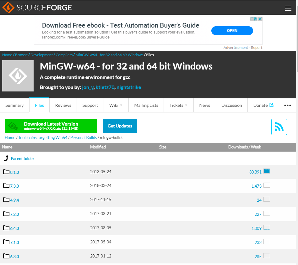打开MinGW下载页面
