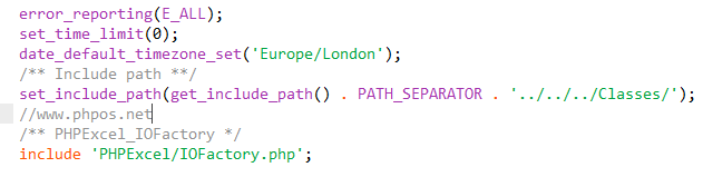 设置错误报告、设置时区、设置程序运行时间,当然,这个运行时间可以不设置、设置PHPExcel类的类库存路径,然后,引入IOFactory.php文件,这个文件是最重要的,本功能就是通过这个文件来处理的,这几个设置代码如下: