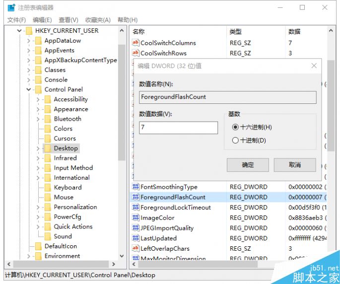 在右侧找到ForegroundFlashCount双击之后就可以看到上面小编提问的答案了,7次哦!