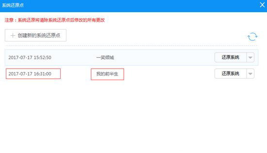 新的系统还原点的创建时间和名字都写得很清楚,当然我们创建这个系统还原点的前提还是目前这个系统运行地足够稳定,