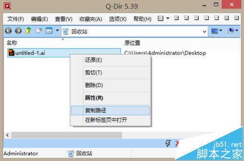 2、打开 Q-dir,进入回收站,右键要删的文件,复制路径