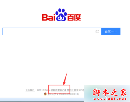 1、打开百度首页,点击页面底部的“使用百度前必读”;