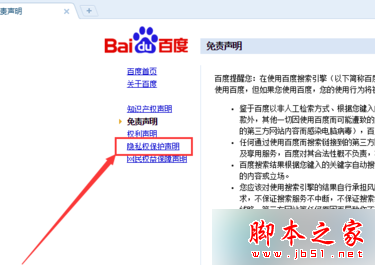 2、点击页面左侧的“隐私权保护声明”;