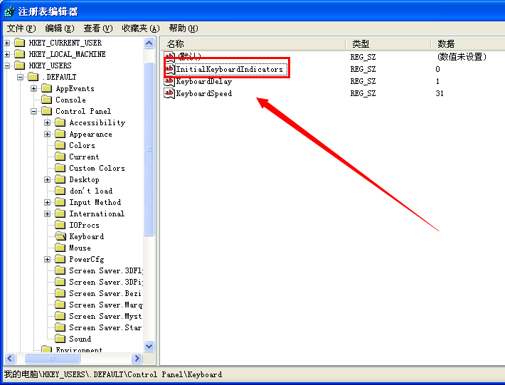 7、在[Keyboard]的右边双击打开[InitialKeyboardIndicators]