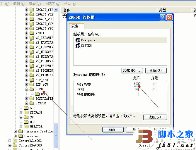 打开注册表,找到 HKEY_LOCAL_MACHINE\\SYSTEM\\ControlSet001\\Enum\\Root\\RDPDR ,在RDPDR上点击右键,选择“权限”,改变“everyone”的权限为“完全控制”