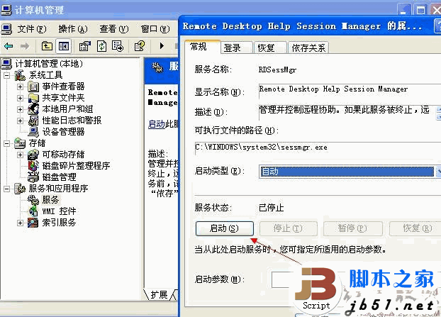 开启Remote Desktop Help Session Manager ”和“Telnet”的服务 我点电脑 右键 管理 服务和应用程序 服务